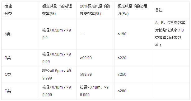2)按GB/T6165-1985《高效空氣過濾器性能試驗方法 透過率和阻力》規定的方法檢驗,其透過率≤0.1%(即效率≥99.9%)或對粒徑≥0.1μm微粒的計數透過率≤0.001%(即效濾≥99.999%)的過濾器為。