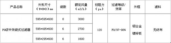 F9級袋式中效過濾器一般應用:中央潔凈空調通風系統中效過濾,制藥、醫院、電子、食品、等工業空調凈化中級過濾、高效過濾裝置的預過濾。延長高效過濾器的使用壽命。