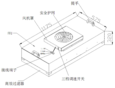 風機過濾單元( Fan Filter Units),簡稱FFU。是一種自帶動力具有過濾功能的末端送風裝置;風機從頂部將空氣吸入并經HEPA高效過濾器過濾,過濾后將潔凈空氣從出風面均勻送出,為潔凈環境提供潔凈空氣和微粒過濾控制。